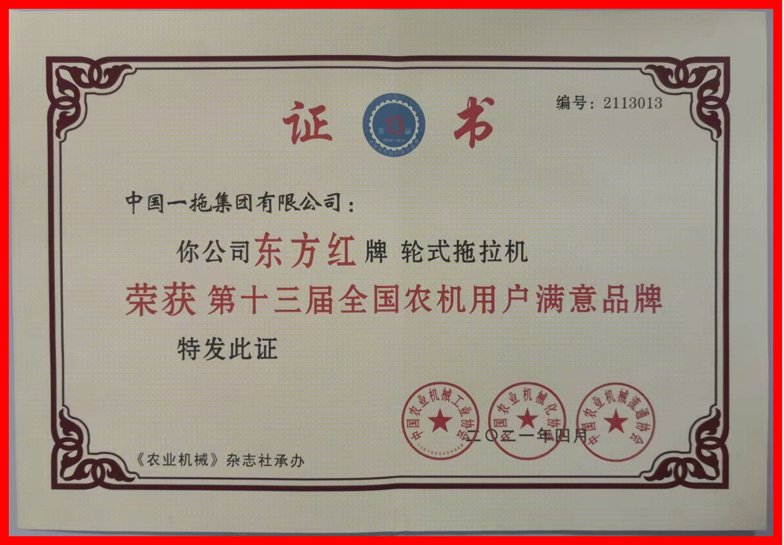 第十三屆全國農機用戶滿意品牌東方紅牌輪式拖拉機