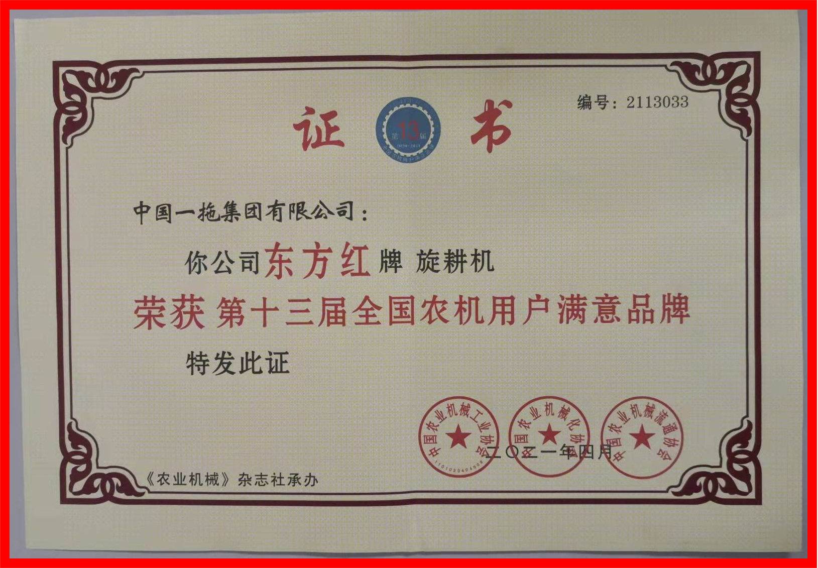 第十三屆全國農機用戶滿意品牌東方紅旋耕機